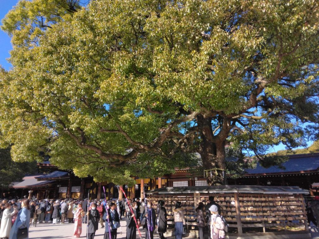 Durante le prime settimane dell’anno si visitano templi buddhisti e/o santuari shinto (お神社, o’jinja), con mercatini e decorazioni di Capodanno. Ho avuto la possibilità di acquistare l’omamori (お守り), talismano portafortuna: ne esistono di diverse varietà in base a che tipo di fortuna vorresti ricevere per l’intero anno. Un curiosità interessante: per l’acquisto dell’omamori non si utilizza il verbo “pagare” bensì “ricevere”, poiché il talismano è considerato un dono delle divinità. Altri portafortuna: freccia “rompi-peccati” (破魔矢, hamaya) e tavolette di legno (絵馬).